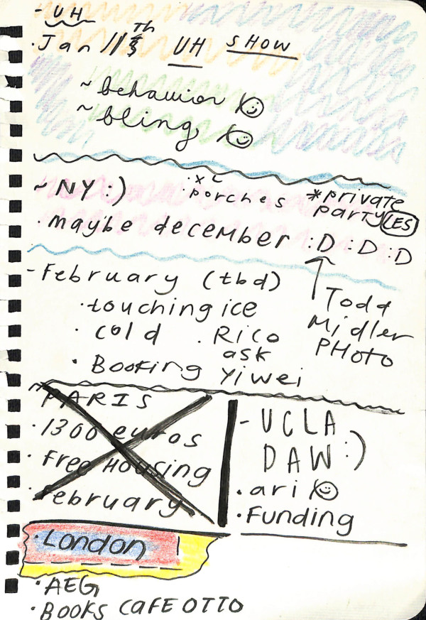 I am considering doing my long-term archival project on music documentation in Los Angeles. How can we remember concerts, programming, DJ sets, radio shows, via ephemera? I am interested in collecting physical set lists, recording audio at shows that occur in Los Angeles, interviews and conversations, printed photographs, cigarette buds, a empty white claw can…